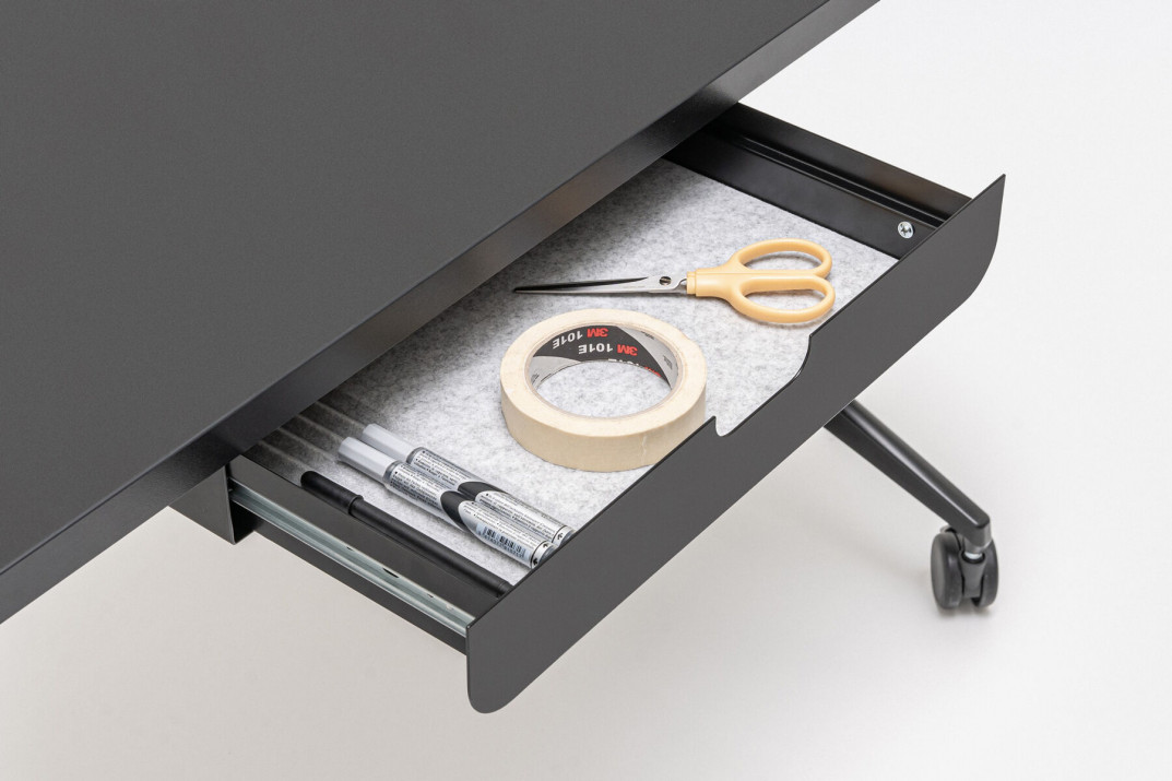 - Opcjonalne szafka managerska i / lub kontener zapewniają możliwość przechowania najpotrzebniejszych przedmiotów, narzędzi pracy i dokumentów;