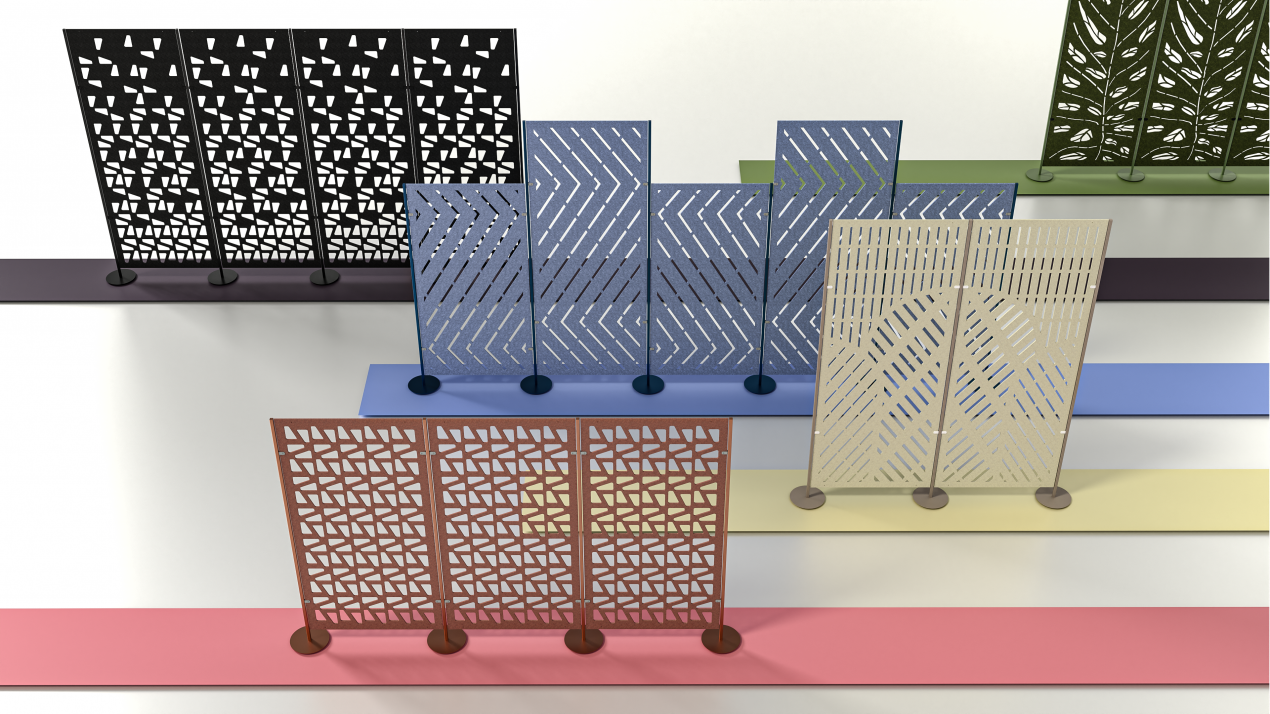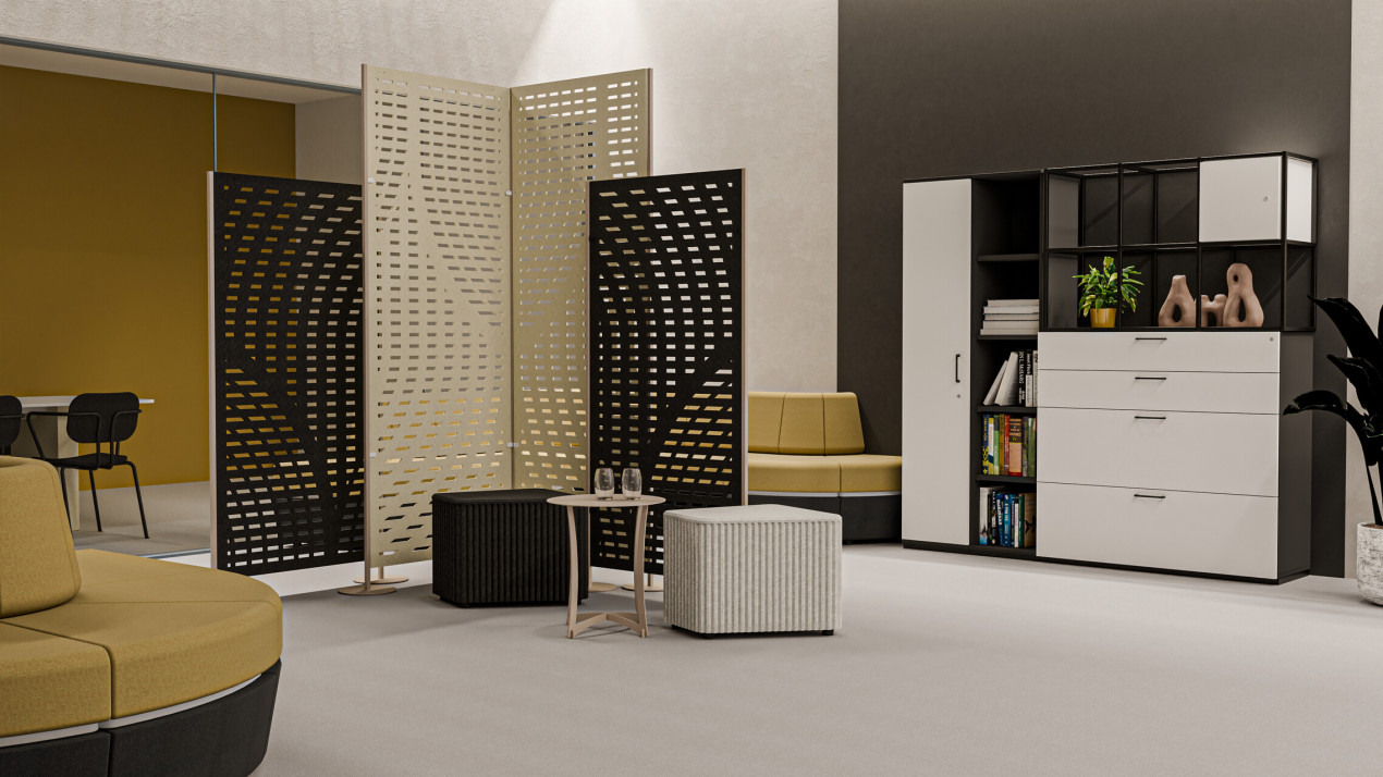 Texo to kurtyny akustyczne filcowe montowane do sufitu oraz wolnostojące kurtyny ażurowe. Texo pozwalają na szybki i prosty podział przestrzeni biurowej oraz zdecydowanie poprawiają komfort akustyczny w pomieszczeniu.
