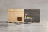 Ścianki VANK_FLIP oferują szerokie możliwości konfiguracji - można je łączyć liniowo, pod kątem 90° lub 135°, a także wybierać spośród dwóch wysokości i podstaw: stalowej na kółkach z hamulcami lub drewnianej ze zintegrowanymi rolkami. Innowacyjnym rozwiązaniem są obrotowe panele, które umożliwiają tworzenie prześwitów przypominających okna oraz decydowanie o poziomie prywatności.