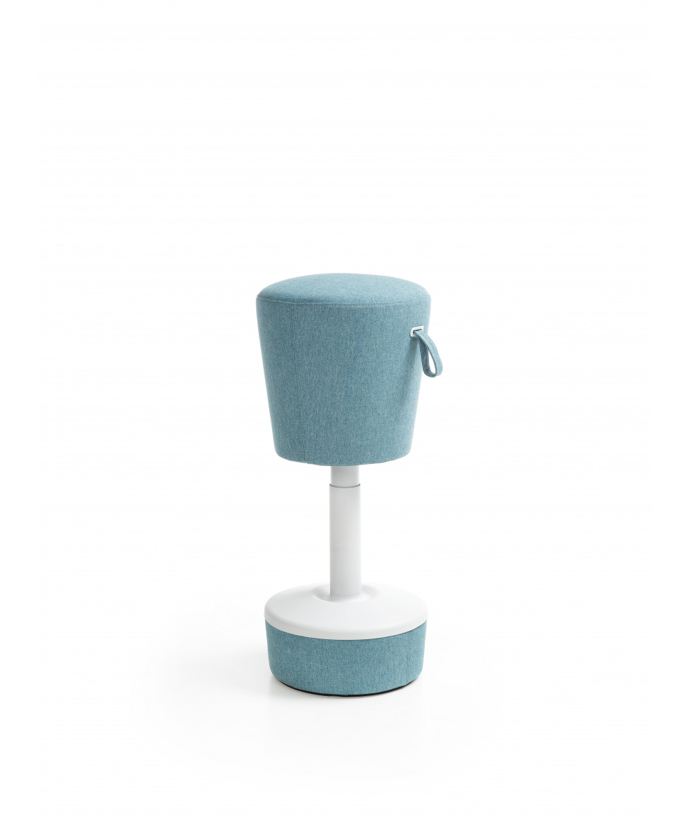 Siedzisko jest wyposażone w uchwyt do regulacji amortyzatora, co pozwala na łatwe przenoszenie pufy w sytuacji, gdy musimy zmienić miejsce pracy. Kolekcja jest dostępna w szerokiej gamie kolorów tapicerek - od pastelowych po bardzo wyraziste.