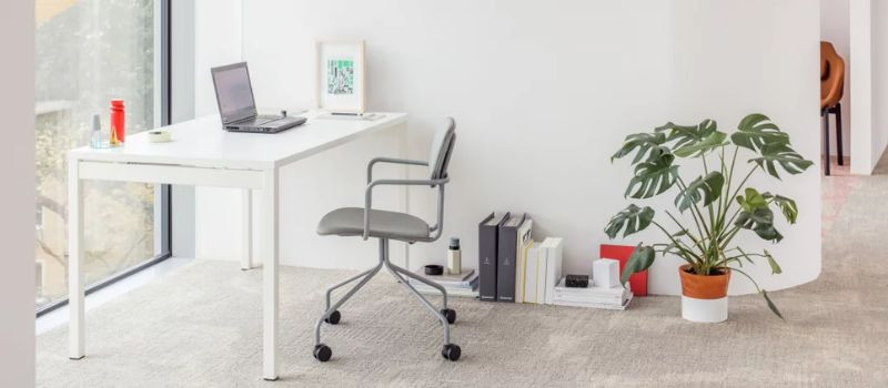 Projektując miejsce do pracy w domu, warto postawić na neutralne kolory, które uspokajają i nie rozpraszają uwagi np. podczas wideokonferencji. Wykorzystanie rozwiązań znanych z przestrzeni coworkingowych, takich jak organizery na biurko czy przegrody biurkowe, pomaga odizolować się od otoczenia. Nowoczesny design sprawia, że profesjonalne meble biurowe świetnie wtapiają się w domową estetykę.